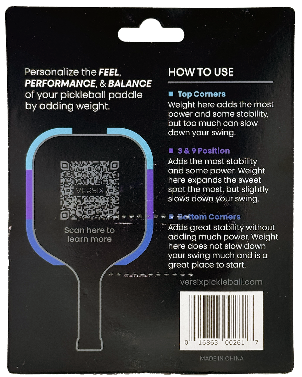 Versix Pickleball Tungsten Tape, used to add weight to your pickleball paddle, is an alternative to lead tape. Tungsten is non-toxic and weighs in at 1 gram per inch—so you can customize your pickleball paddle to feel how you want it to.