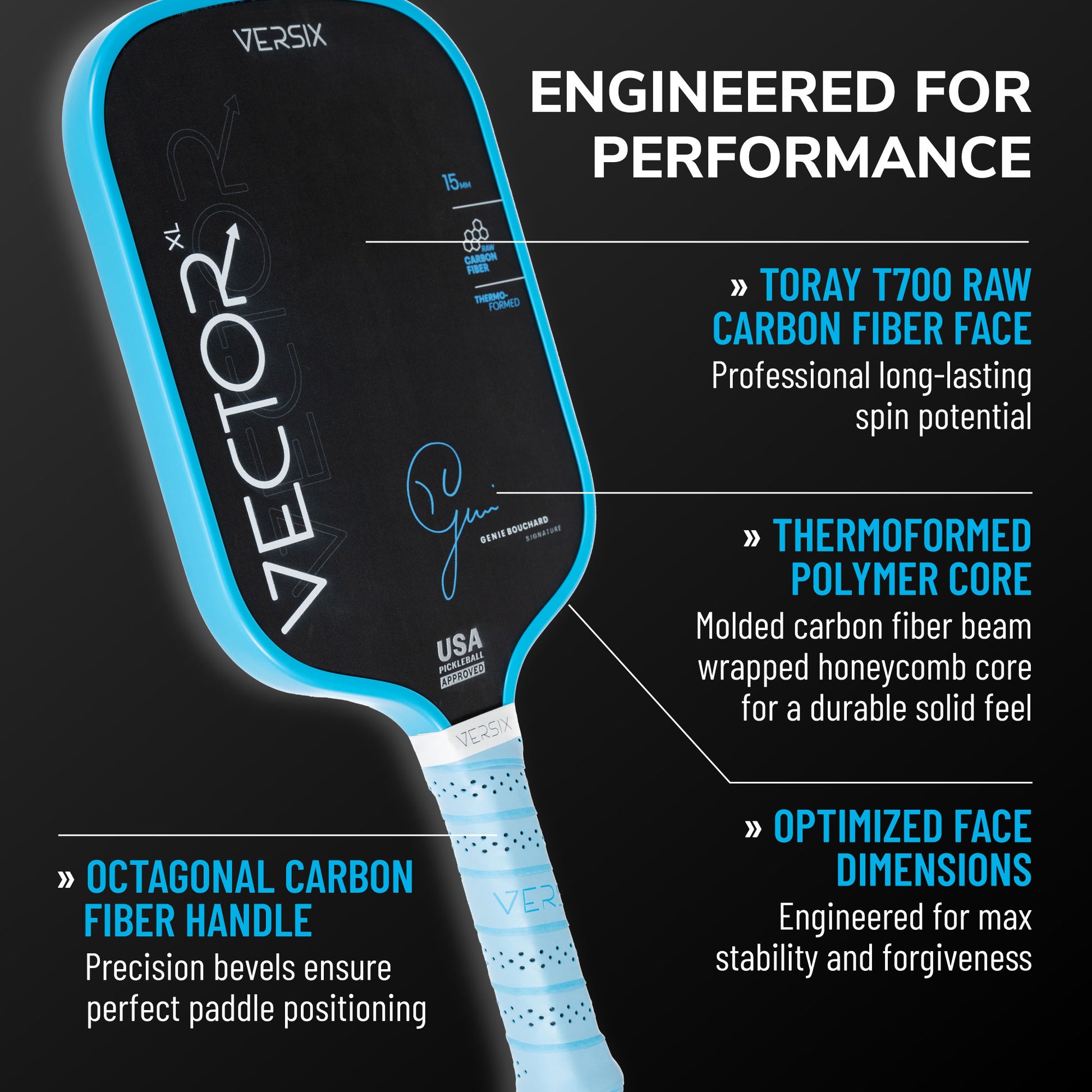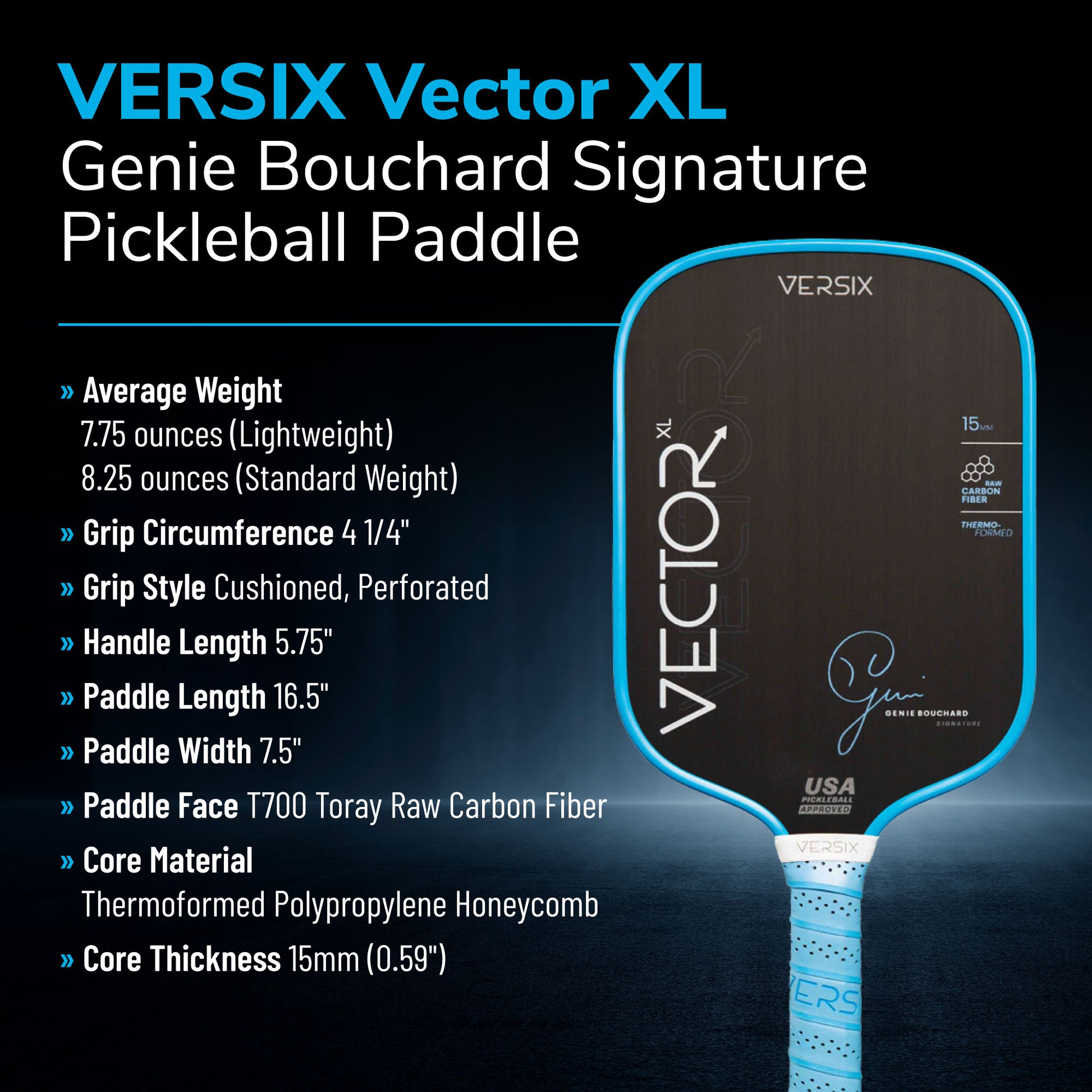 Versix Vector Genie Bouchard Blue Signature Pickleball Paddle